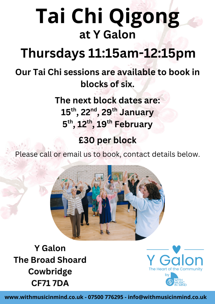 Tai Chi is a gentle form of exercise designed to help improve your mental health and physical wellbeing. Sessions are Thursdays 11:15-12:15 and are offered in six week blocks, for £30 per block payable in advance.